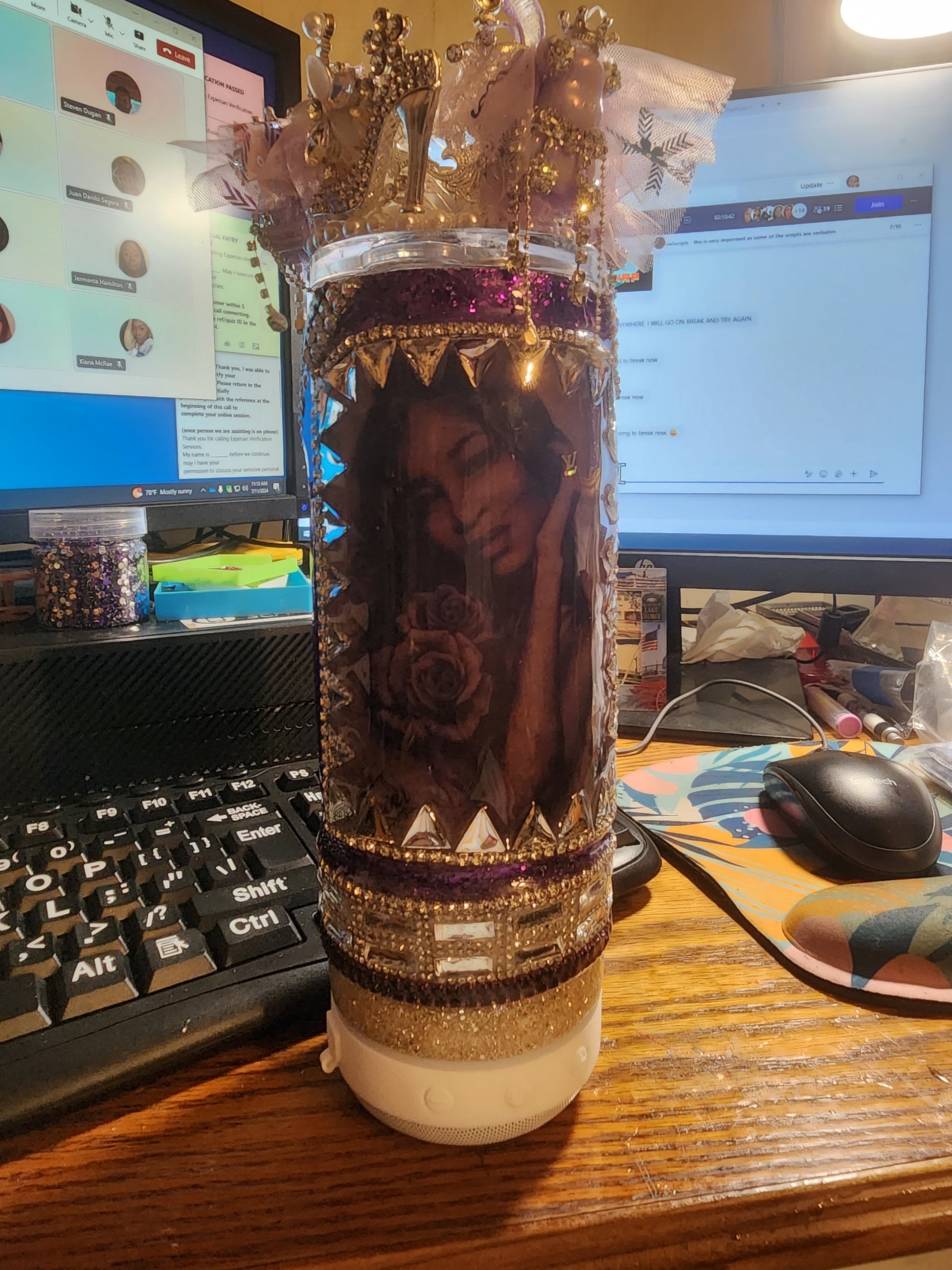 20oz speaker diva. Upgrade to 30 or 40oz add additional charge.
